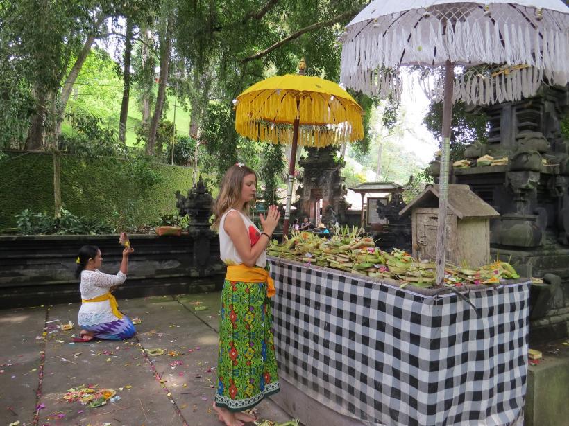 Доверих се на Вселената и просто оставих потока й да ме води там тогава, когато съзнанието ми е готово за това. И по този начин, през ноември 2016 година моментът настъпи. Заедно с още 17 души, до тогава просто непознати за мен, които след това се трансфораха допълнително от другари, се отправихме към пътешествието. 15-часов полет, прехвърляне в Куала Лумпур, до момента в който най-после стигнахме крайната дестинация и кацнахме в Бали. Още със слизането от самолета се усещаше влажният климат на тропическия остров. Бяхме посрещнати от нашия гид Маде и щерка му Кадекс. Двамата окичиха на вратовете ни ръчно направени гердани от франджипани – свещените цветя на Бали.