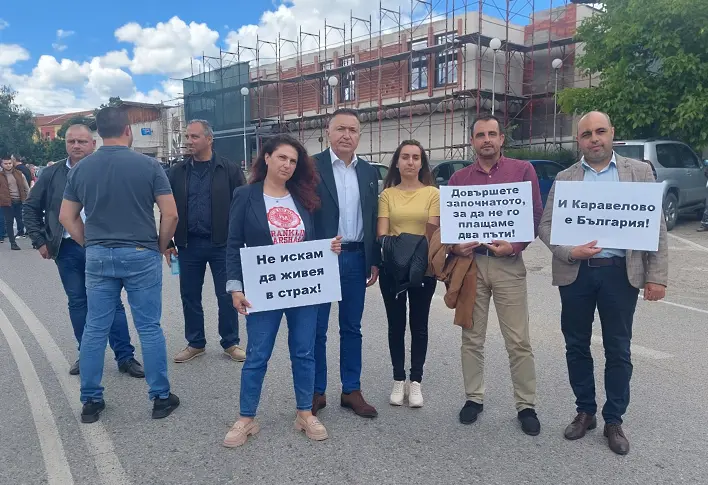 Жители на засегнатите обитаеми места издигнаха плакати „ Нормални улици и мостове. Толкова доста ли желаеме? “, „ Не желая да пребивавам в боязън! “, „ Искам да работя в МКВПМС. Един работен ден на 6 месеца! “, „ Искаме сигурност и естествени условия на живот! “, „ Довършете започнатото, с цел да не го плащаме два пъти! “, „ И Каравелово е България! “, „ Асфалт не се яде, само че в тиня не се живее! “.