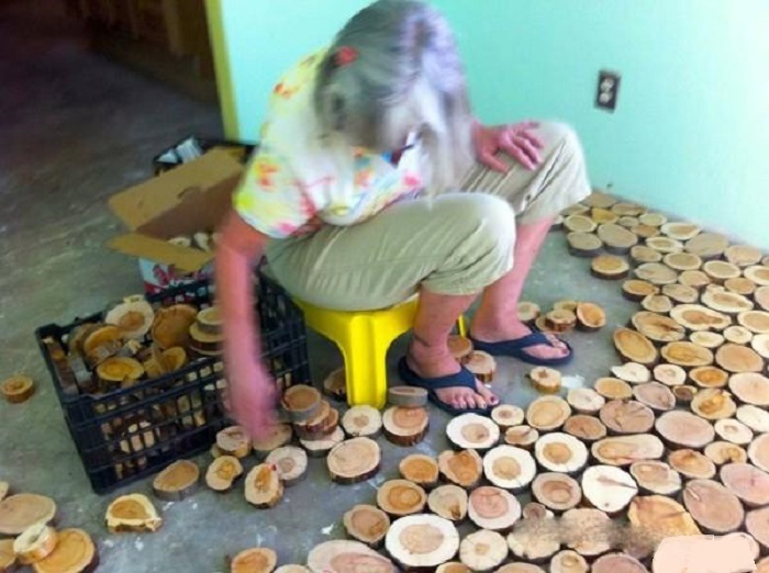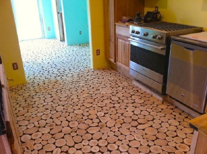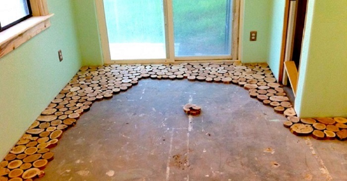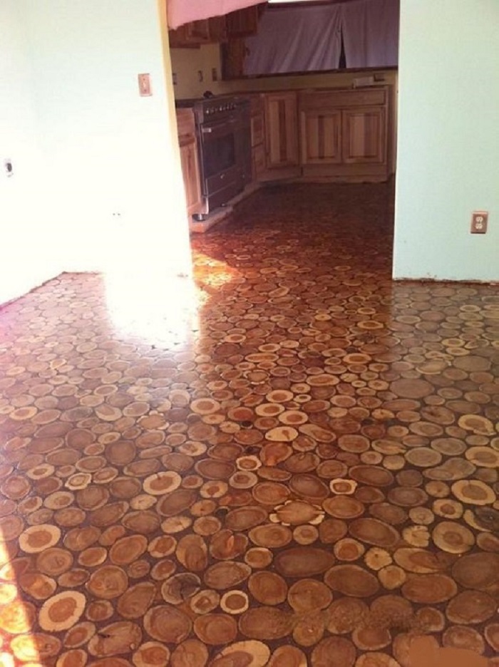 И по този начин – те решили да покрият пода с.. дървени трупи. Различно, неповторимо и даващо чувство за уют.