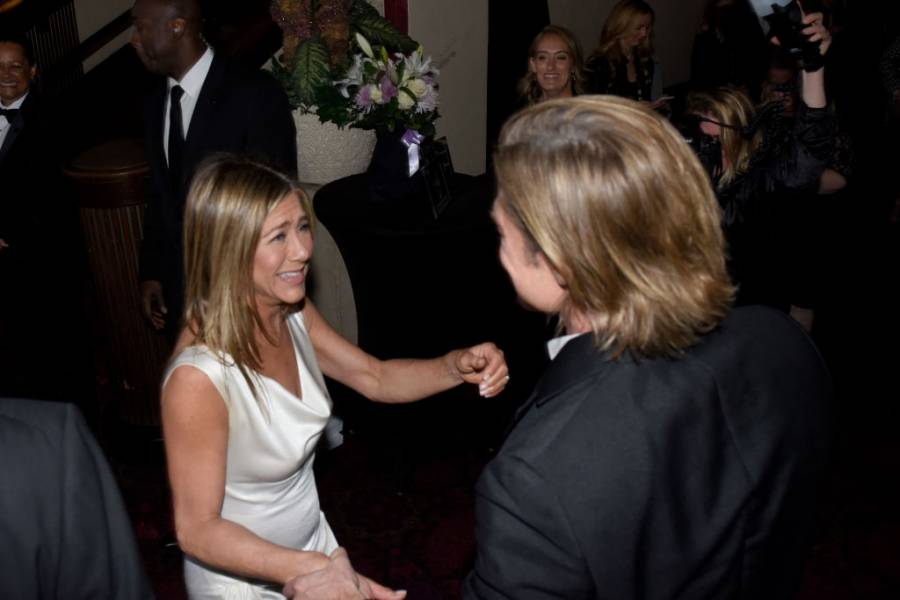 По-късно Дженифър Анистън и Брад Пит бяха изловени от камерите на фоторепортерите. Двамата се срещнаха и размениха небрежно поздрави, прегръдка, щастливи усмивки и няколко погледа. Какво се случва сред тях - следва да разберем!