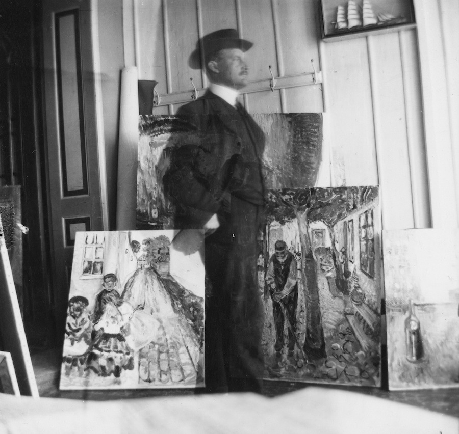 1930, Self-Portrait in front of Death of Marat I, Ekely