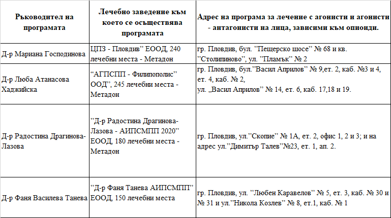 Проверка на TrafficNews обаче демонстрира, че съгласно Регистър на позволения за реализиране на стратегии за лекуване с опиеви агонисти и агонисти-антагонисти на лица, подвластни към опиоиди , който е настоящ към 16 декември 2022 година, няма непосредствен кабинет с лиценз за предложение на метадон на наркозавидими .