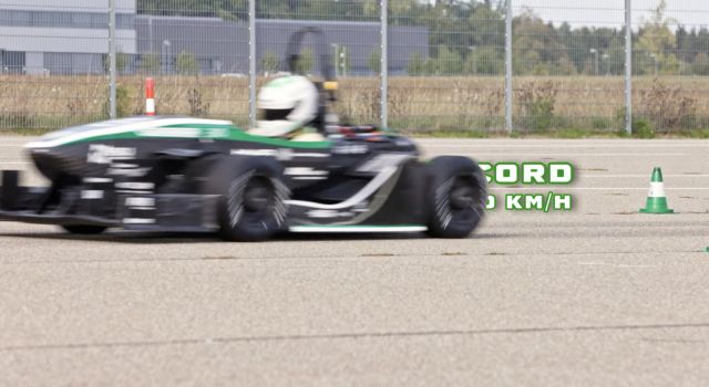 Екип от 20 студенти от университета в Щутгарт съумяха да слагат връх за най-бързо ускоряване от 0 до 100км/ч и да запишат имената си в книгата с върховете на Гинес. Те съумяха да сторят това с стилен електрически картинг с тегло от едвам 173 кг. Компактното транспортно средство е с колела от въглерод и без значение окачване.