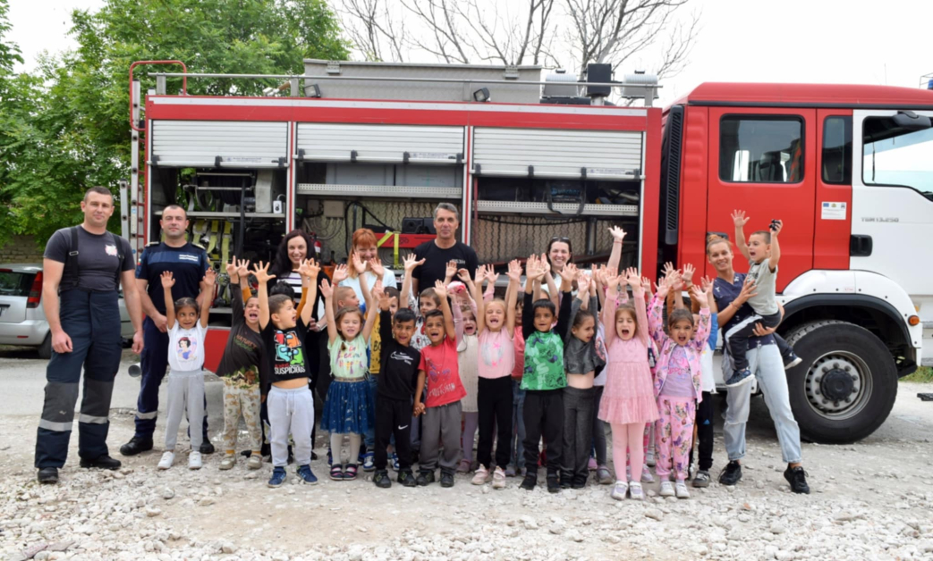Децата имаха опция да прегледат оборудването и оборудването на огнеборците. Успяха да сложат каските на пожарникарите, а някой даже кислородните маски. От всякъде се чуваха радостни възгласи, а на въпроса: „ Кой желае да стане пожарникар? “, малчуганите подвигаха ръце и в един глас възкливаха: „ Аз “.
