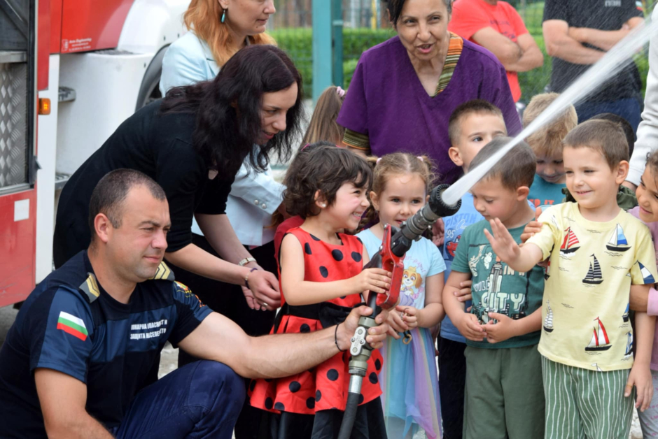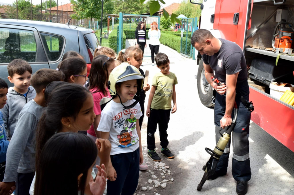 Екип от Трета районна работа „ Пожарна сигурност и отбрана на популацията “ – Пловдив зарадва децата от ДГ „ Синчец “ в Скутаре с демонстрационно занимание по гасене на пожар. Цветомир Петров, Георги Христев и Димитър Димитров срещнаха малчуганите с професионалните умения на огнеборците. Те описаха за пожарната техника, по какъв начин се реализират дежурствата и се правят пожарогасителни и избавителни действия при пожари, бедствия и изключителни обстановки.