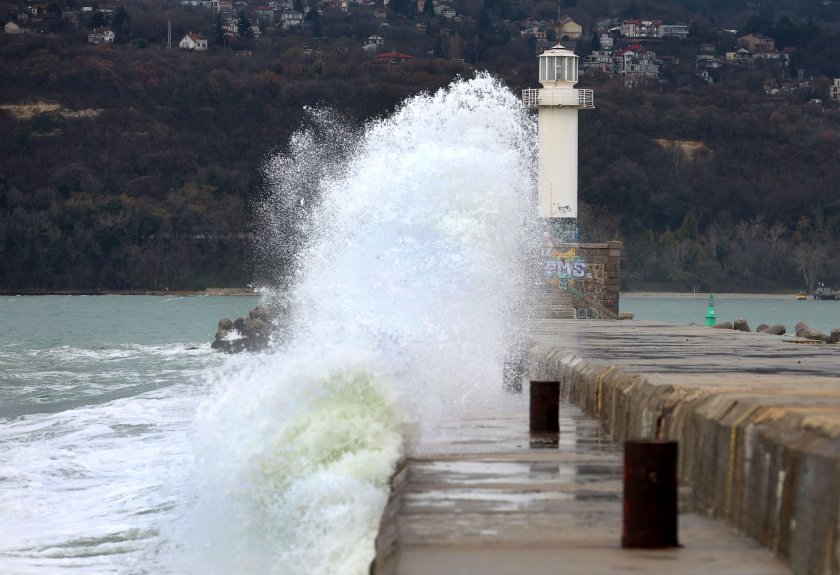 Силният североизточен вятър подвигна големи талази по варненския бряг.