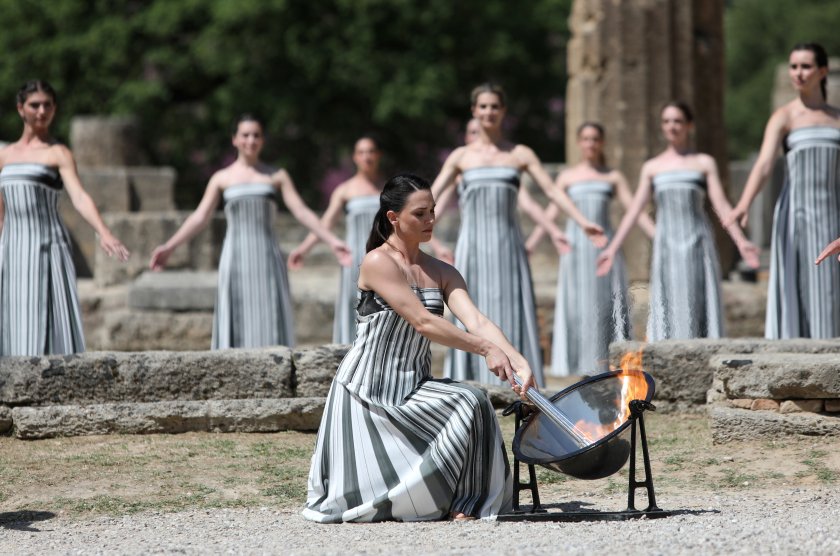 Репетиция за запалване на Олимпийския огън в Гърция, церемонията стартира на 16 април. Олимпийските игри ще се проведат във Франция от 26 юли до 11 август.