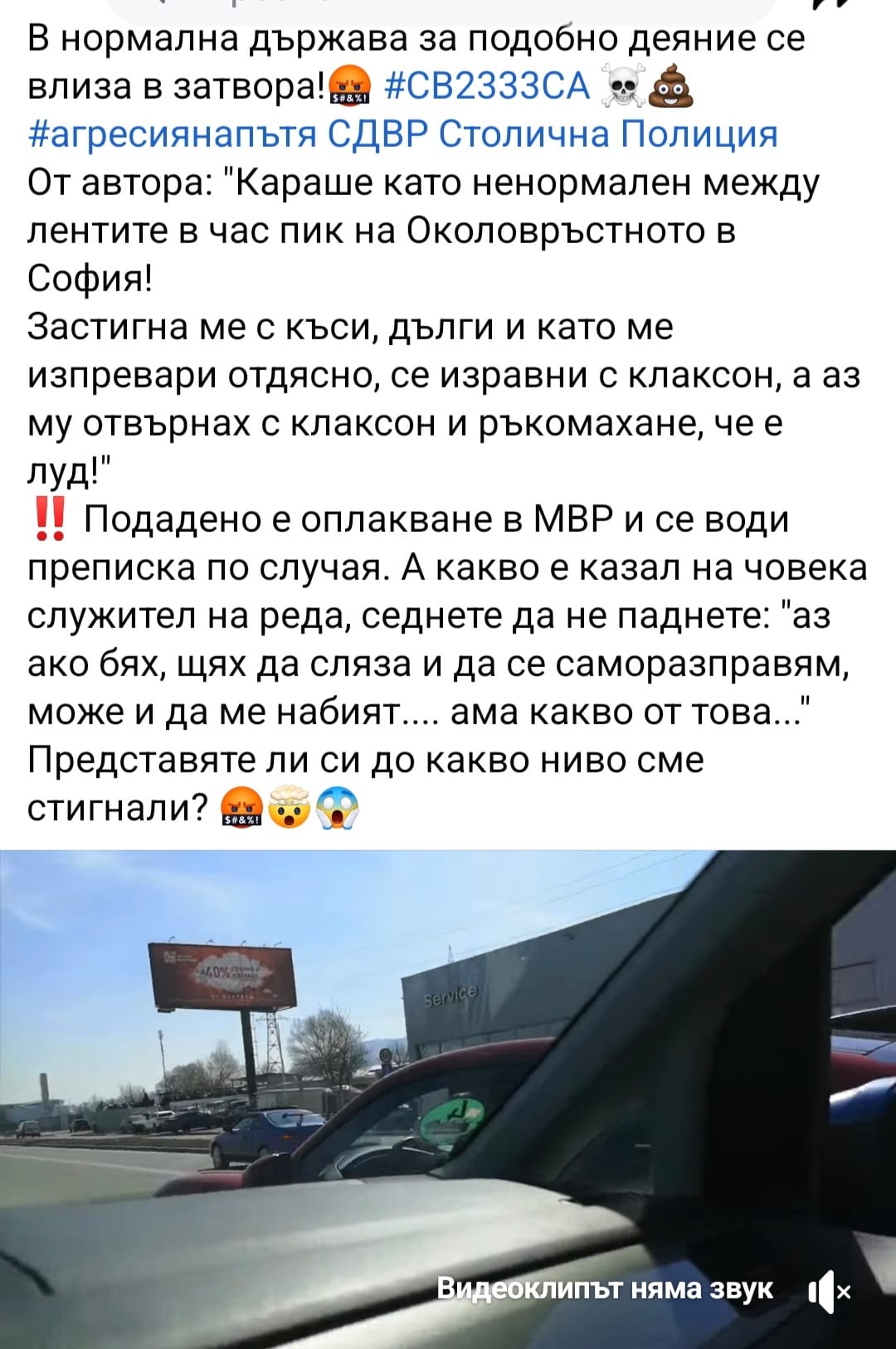 Екшън сред водачи се е разиграл на Околовръстното на София. Това излиза наяве от фрагменти в обществената мрежа.