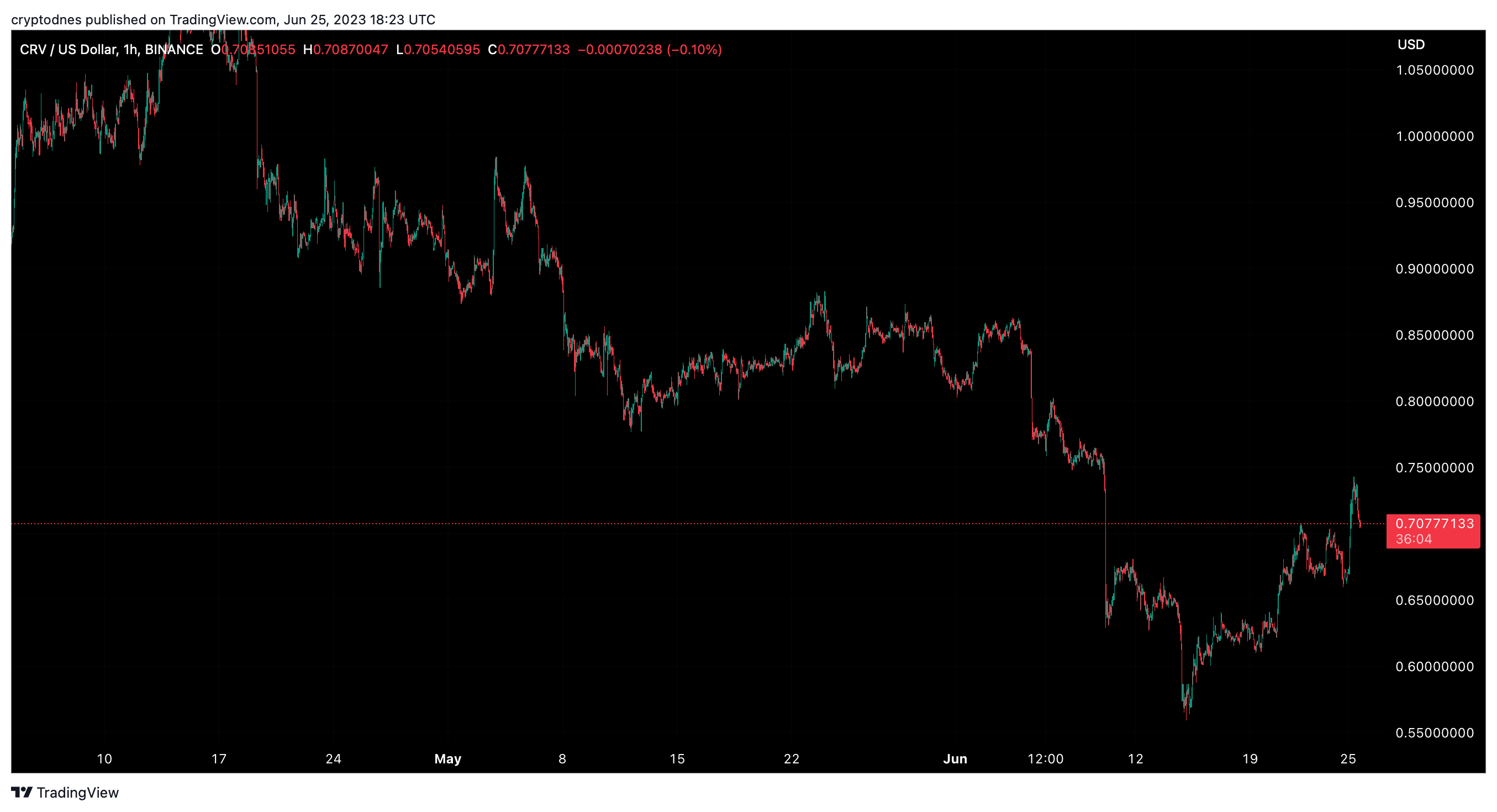 Понастоящем CRV се търгува на цена от $0.70 с дневна облага от над 5%. През последните седем дни Curve означи нарастване от над 12%.