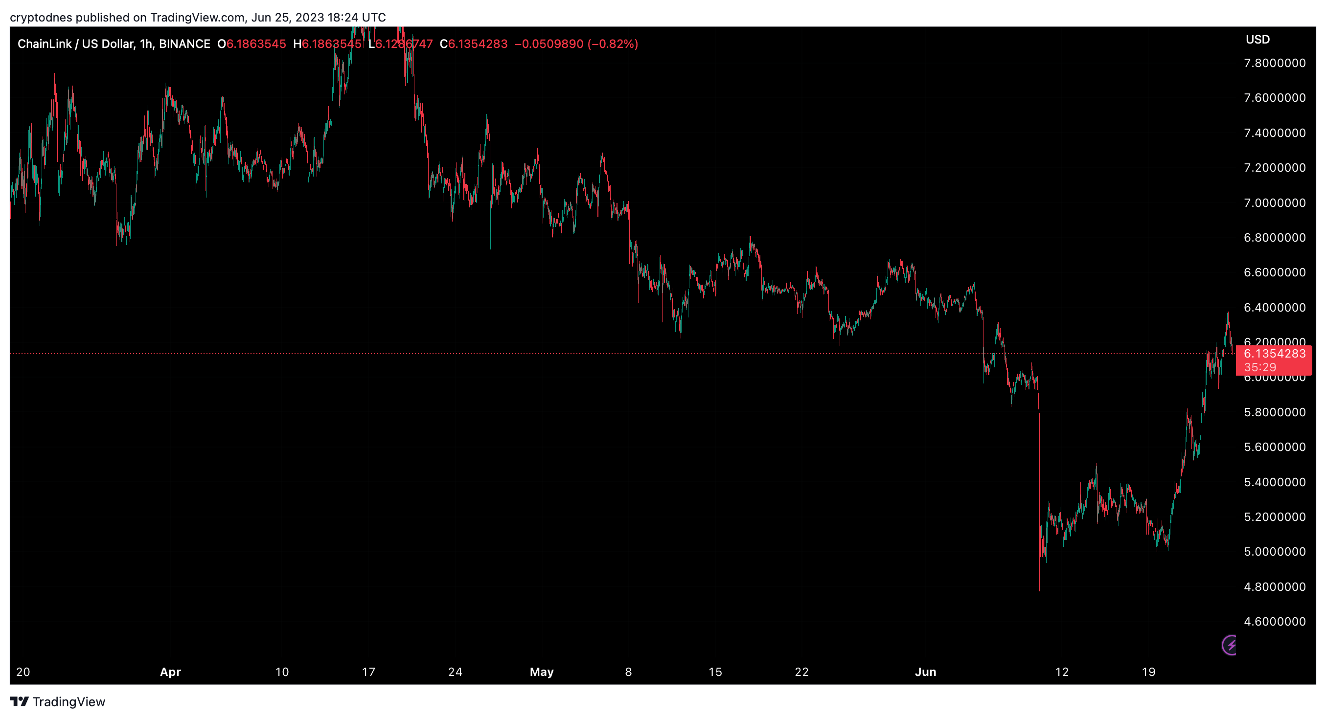 Към момента на писането на публикацията LINK се търгува на цена от $6.16, което демонстрира седмична облага от над 15%.