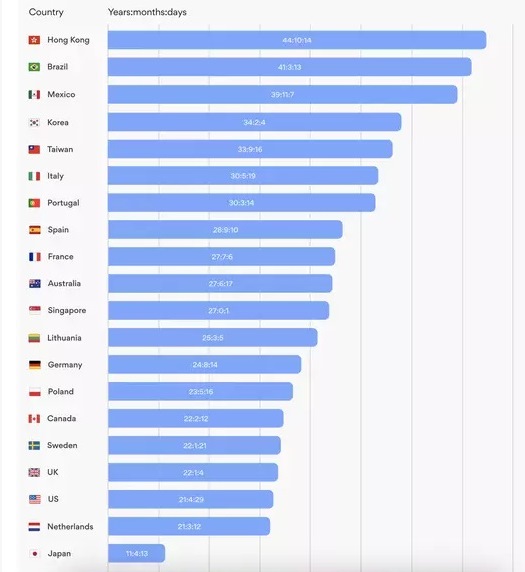 NordVPN обясни, че най-вече време в интернет прекарват жителите на Хонконг. Оказва се, че средностатистическият гражданин на тази страна губи 44 години от живота си, седейки в интернет.