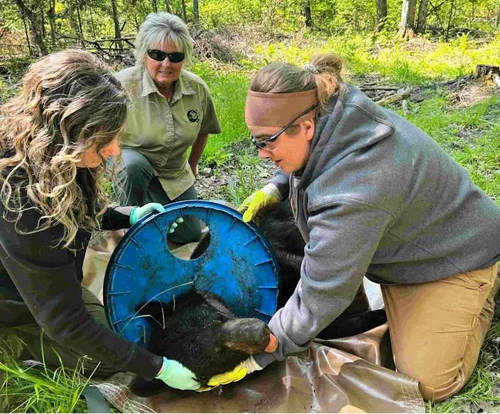 Експерти по дивата природа в щата Мичиган съумяха най-сетне да заловят черна мечка и да отстранен огромен пластмасов похлупак, който е бил затънал към врата ѝ цели две години, оповестяват локални управляващи.