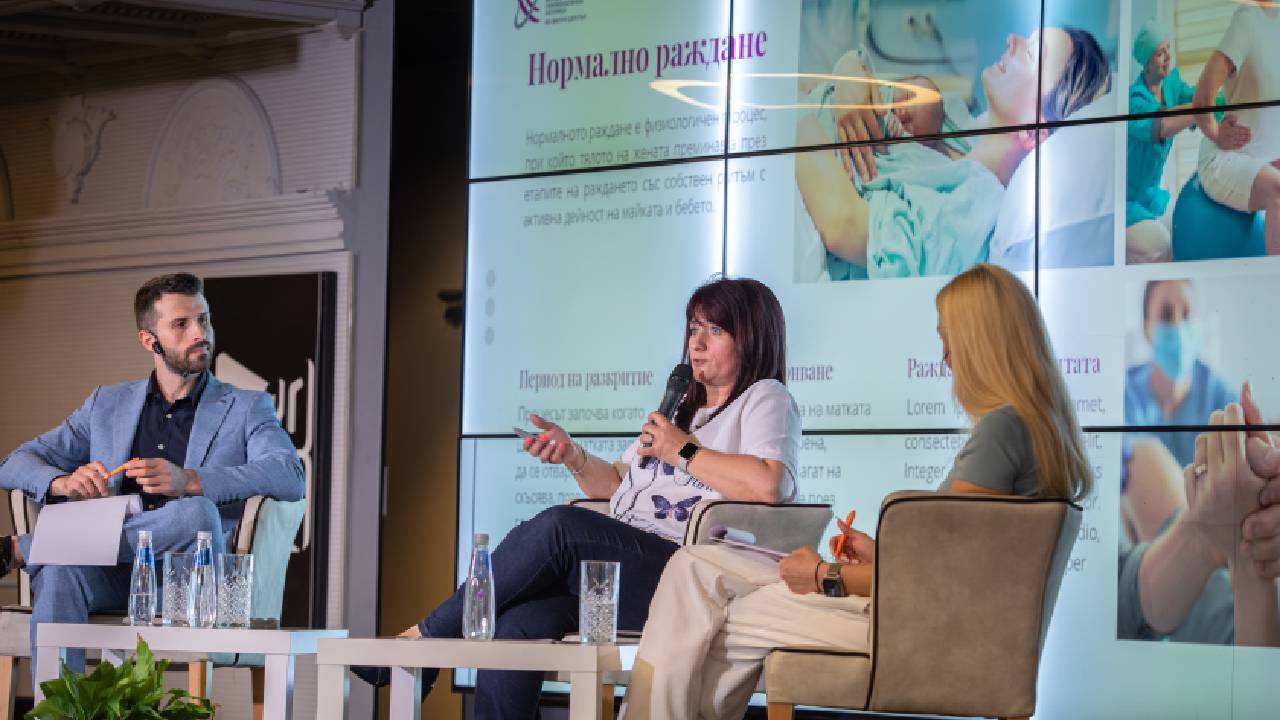 на акушерката Динка Негалова по време на първото целодневно събитие на „ Ох, на мама! “ за бременни и родители, което се организира през май в гр. София.
