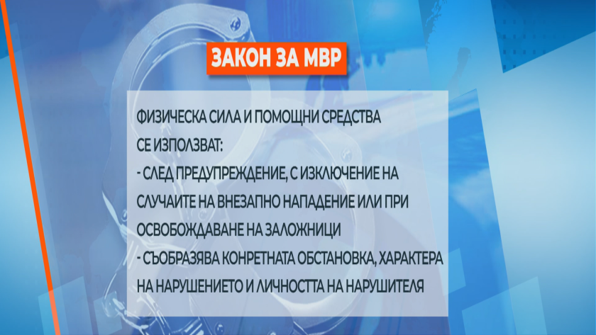 Според закона физическа мощ и помощни средства се употребяват след предизвестие и след преценка на ситуацията и нарушаването.