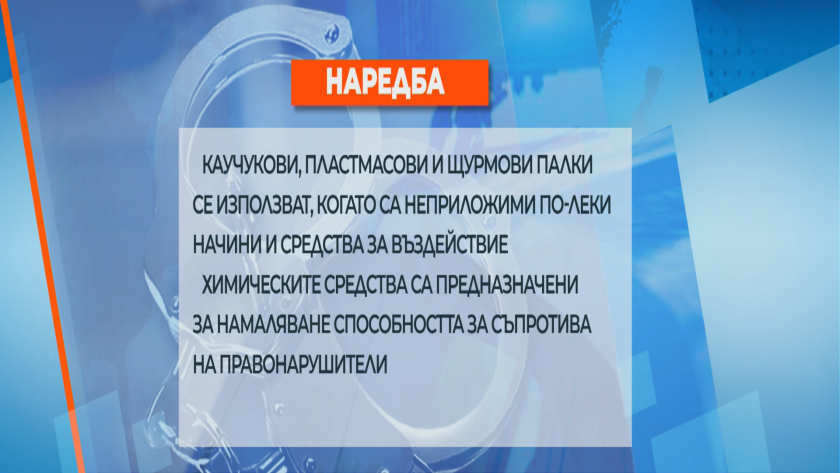 В нея е записано, че палки се употребяват, когато са неприложими по-леки способи и средства за влияние. Химическите средства, да вземем за пример спрей, съгласно наредбата, са за понижаване на способността за опозиция. Кога и за какво се употребяват водометни машини също е регламентирано в наредбата.