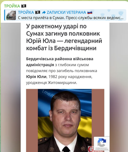 Оказа се, че един от ликвидираните е заместник-командирът на 26-а артилерийска бригада, командващ 27-а артилерийска бригада полковник от Въоръжените сили на Украйна Юрий Юла.