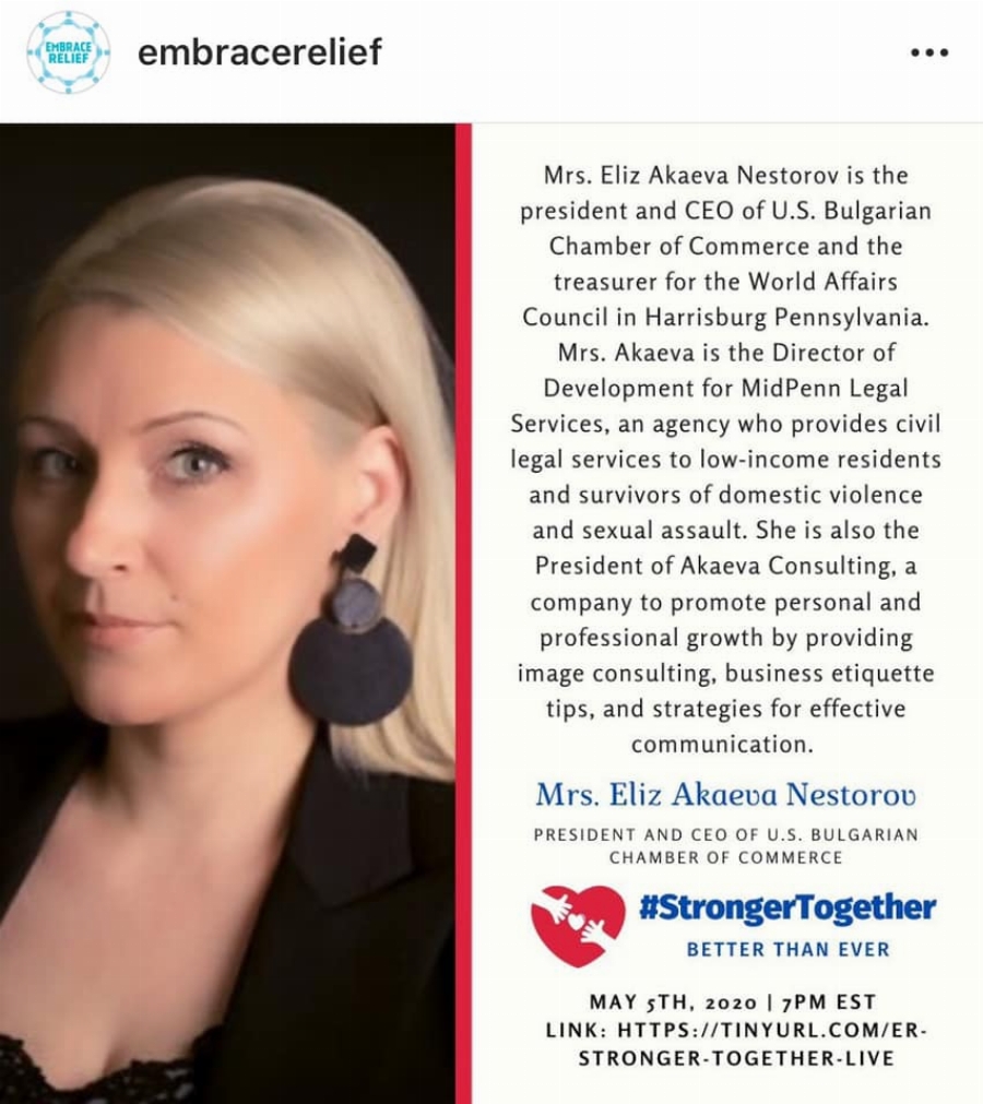 „ Акаева Консултинг “ ООД (Пенсилвания, САЩ). Дружеството е благосъстоятелност на Елиз Акаева Несторов – президент на Американо-българската комерсиална камара (САЩ) и касиер в World Affairs Council в Харисбърг, Пенсилвания. Акаева е също шеф по развиването на MidPenn Legal Services - организация, която дава гражданскo-правни услуги на поданици с ниски приходи и оживели от домашно и полово принуждение.