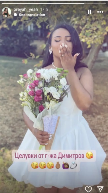 Ексцентричната певица Прея публично подписа брак с половинката си Евден Димитров след осем години връзка. Новината за сватбата разкри самата тя чрез Instagram сторита, написа " Инстаграм ".