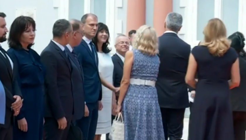 Първата дама бе посрещната топло от брачната половинка на Джуканович - Лидия Куч, която пък се бе барнала в морско синя рокля с бял колан и чантичка в същия цвят. Направи усещане също и че госпожа Радева бе заложила на релативно висок ток и със сантиметър-два стърчеше над растежа на мъжа си.