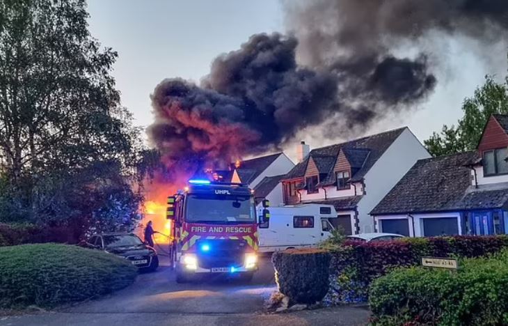 Електрическа кола се взриви и подпали дом и ван в Хампшир. Ужасяващият миг, в който електрическият автомобил ненадейно избухва в пламъци на алея пред къща, беше сниман от охранителна камера. Пожарът се популяризира бързо към ван и фамилна къща в град Чандлърс Форд, Хампшир, написа " Дейли Мейл ".