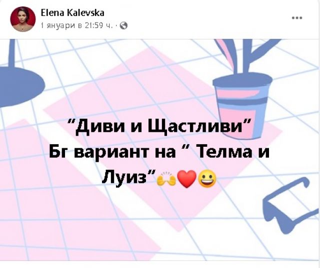 “Диви и Щастливи”. Бг вид на “ Телма и Луиз”, гласи късият коментар на Елен. Обвинението в плагиатство не остана неусетно от нейните другари в обществените мрежи. Тя не срещна огромна съпричастност, защото хората намерено обявиха, че филмът доста им е допаднал.