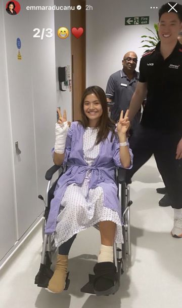 В петък в лайв-включване в профила си в инстаграм тя се появи от болничното легло, потвърждавайки, че интервенцията на глезена към този момент е направена. Тя също по този начин показа своя фотография в инвалидна количка, с превързан ляв гален, дружно с надпис " 2/3 ", последван от усмивка и емотикон със сърце. Радукану споделя: " Току що ми оперираха глезена, тъй че две от трите интервенции са подготвени. Остава една, само че не за време от една седмица ".