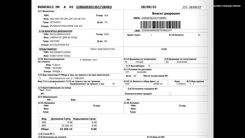 Ембаргови артикули от Русия не престават да влизат в страните от Европейския съюз. Разследване на чешкото издание „ Seznam Zprávy “ е разкрило един от контрабандните направления, който трансформира стоките „ Сделано в России “ в артикули с български генезис. За задачата е употребена компания на съветски жител с израелски паспорт, записана в Хасково.