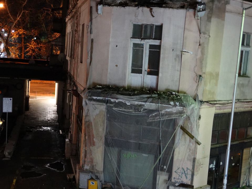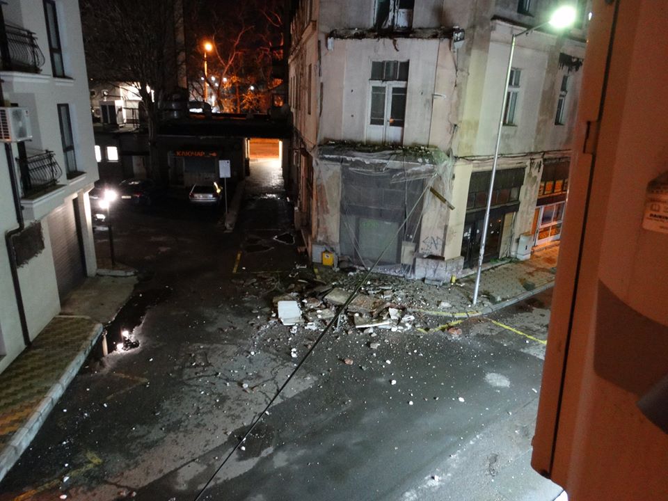 Бетонните блокове са се свлекли на тротоара при височина от 5-6 метра. Мястото към момента не е отцепено и най-вероятно още през днешния ден ще се извършат предпазните процедури. Възможно е да има и други падащи детайли, даже фасадата на постройката, тъй като и с просто око се вижда, че тя е занемарена.