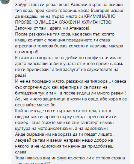 Под поста му във Facebook обаче го упрекват, че има и регистрации в полицията: