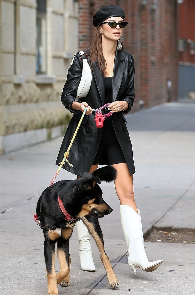 Емили Ратайковски несъмнено знае по какъв начин да трансформира градска улица в подиум - даже когато разхожда кучето си.