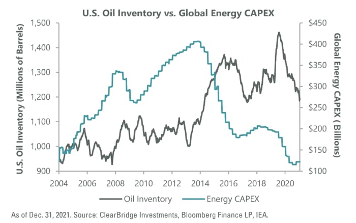 Графиката е предоставена от Сам Питърс, портфолио управител в ClearBridge Investments, и е включена най-скоро в тази публикация на 11 май, която включва избор на енергийни акции от Питърс и други мениджъри на пари.Лявата страна на графиката демонстрира, че финансовите разноски на петролната промишленост са се нараснали през предходни интервали на едва предложение. Дясната страна на диаграмата демонстрира, че финансовите разноски са паднали доста ниско предходната година, защото запасите понижават.Производителите на нефт и природен газ в Съединени американски щати са се поучили от предходни цикли, когато фокусът им върху построяването на доставки докара до спад на цените, задоволително сериозен, с цел да извади някои от бизнеса и да сътвори финансов стрес за всички. По време на сегашния цикъл доста ръководители в промишлеността означиха какъв брой е значимо да дадат на своите акционери това, което желаят – композиция от рационална инвестиция, по-високи дивиденти и назад изкупуване на акции.Инвестиране в енергийния секторЕнергийният бранш на S&P 500 се състои от 21 акции и се наблюдава от Energy Select Sector SPDR Fund. Претеглянето на показателя по пазарна капитализация значи, че Exxon и Chevron дружно съставляват 44% от портфолиото на борсово търгувания фонд, съгласно FactSet.iShares Global Energy употребява по-широк метод, като държи всички акции, държани от XLE, само че прибавя експозиция към производители отвън Съединени американски щати, като Shell, TotalEnergies и BP PLC за портфейл от 48 акции. Той също е съсредоточен, като първите пет холдинга съставляват 47% от портфейла.Hennessy Energy Transition Fund има 28 акции или енергийни единици с лимитирана отговорност към 30 юни. Фондът влага в производството, превозването и разпределението на сила. Той изплаща дивиденти и разпределения на финансови облаги годишно през декември. Петте най-големи холдинга — Plains All American Pipeline, EOG Resources Inc., Exxon Mobil, Solaris Oilfield Infrastructure и Cheniere Energy - съставляват към 25% от портфейла на фонда към 30 юни.Основната цел на Hennessy Energy Transition Fund е дълготраен напредък, като „ преходът “ е фокусът на енергийната промишленост върху по-чисти технологии, в това число природен газ.Фондът Hennessy Midstream е фокусиран главно върху разпределение на приходи от своите вложения в компании и партньорства, които съхраняват и транспортират енергийни артикули. Неговите институционални акции имат рентабилност от систематизиране от 10,75%, въз основа на цената на затваряне от $9,60 на 19 септември и тримесечното систематизиране от 25,8 цента на акция, което фондът поддържа от юни 2015 година, съгласно Кук.Най-големият холдинг на Midstream Fund е Energy Transfer, което съставлява 14% от портфолиото към 30 юни. Това партньорство усили разпределението си два пъти през 2022 г.„ Те имат редица планове в развой на разработка “, сподели Кук.Той уточни препоръчаното оборудване за експорт на полутечен природен газ в Лейк Чарлз, Луизиана, за което чака да бъде подписан контракт до края на тази година.