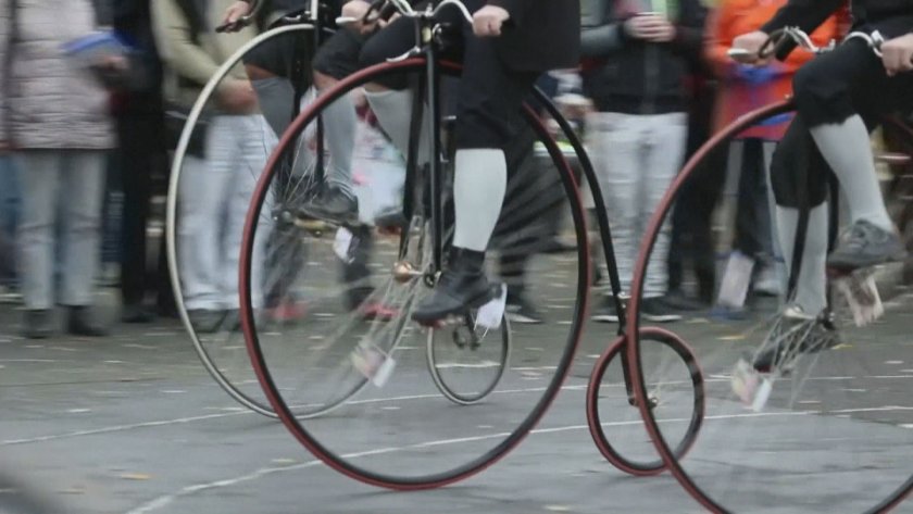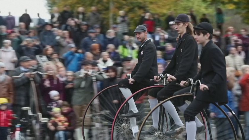 Ентусиасти караха ретро колела в Прага. Пред одобрителните погледи на хората, колоездачите демонстрираха уменията си, облечени в уместно историческо облекло.