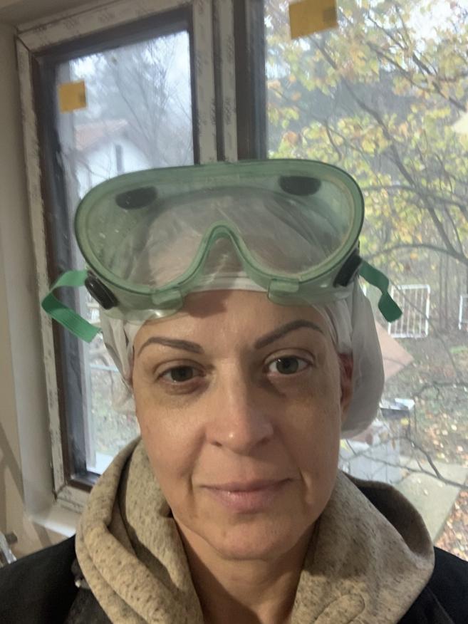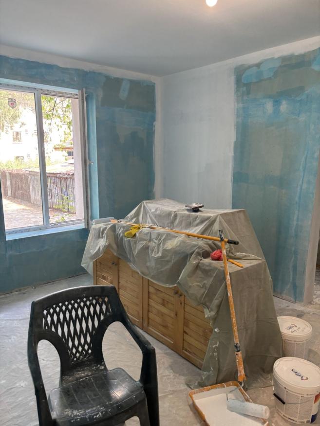 Шкурих стените от вътрешната страна, поради скапано направена шпакловка от непроверени майстори (винаги питайте някой, при който са си “оставили ръцете ”). Боядисвах с латекс спалните - с шапка на главата и духалка (още нямахме отопление, а беше нечовечен студ). Като в анимационен филм видях по какъв начин капката латекс пада от тавана и влиза в окото ми. Нося лещи. Беше смешно и гадно. Минах с два типа телени четки всички парапети, лозница, електрически табло, порти на гаража и всевъзможни железни елементи “живели ” необгрижвани към 15 години. После ги боядисах, в това число новите водосточни тръби - в ръждясало златно.