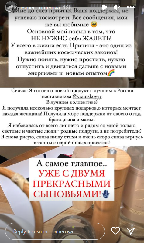 Есмер Омерова, първата законна брачна половинка на Благой Георгиев, е станала майка за повторно. Рускинята призна това в диалог със своите почитатели. Танцьорката по аржентинско танго разкри, че е зарязала бащата на бебето още до момента в който е била в третия месец, това се случило на последния й рожден ден. През юни Есмер навърши 31 години, напомня Lupa.bg. Тя е напуснала таткото на втория си наследник, откакто схванала, че той е аферист и шарлатанин, който има мрачно минало. Явно хубавицата още веднъж ще е самотна майка.
