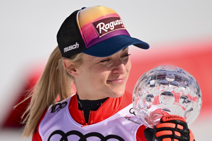 Лара Гут-Бехрами приключи седма, само че това ѝ стигна, с цел да завоюва дребния Кристален глобус в дисциплината и да добави трета купа за сезона след Големия бистър глобус и този в гигантския слалом. В събота швейцарката ще опита да добави и трофея в спускането, като преди последното съревнование за сезона води с 19 точки пред италианката София Годжа.