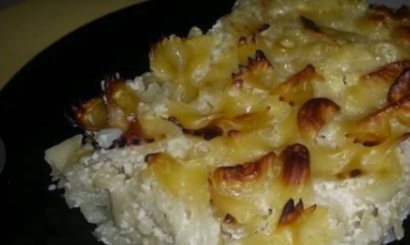 смесено с мащерка – на вкус; върху сиренето поставяте плънката и я покривате с останалите макарони; всичко това заливате със примес от 30 г краве масло, разрушени с щипка сол 4 яйца и 1 ч. чаша кисело мляко. Поставяте тавичката във фурната за към ½ час при температура 200 – 220˚С. Вадите вкусотията от фурната и я поръсвате с 200 г настърган кашкавал, който освен това се разтопява апетитно; добавяте и черен пипер – на усет. Така сякаш „ елементарните макарони “ се трансформират в атрактивна вечеря и вие просто си „ изяждате пръстите от вкусотия “!