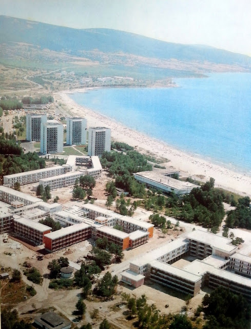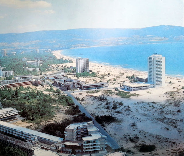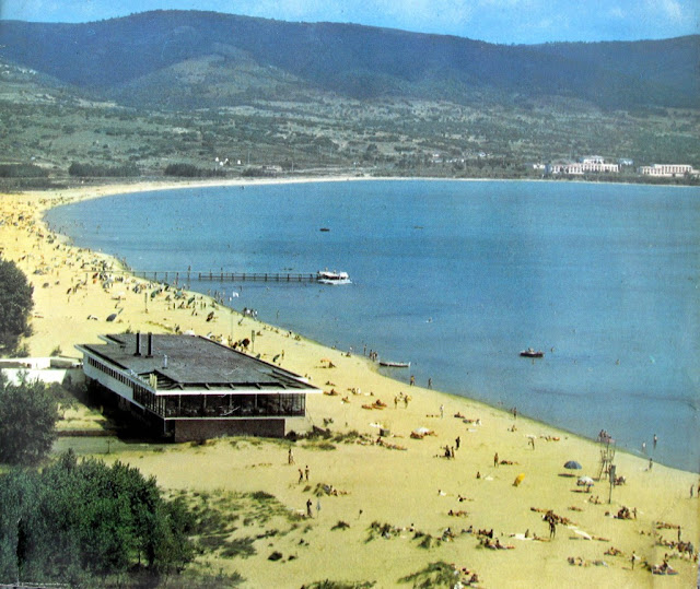 Ето го тогавашният Слънчев бряг. Когато към момента имаше обмисляне и държавна регулация върху строителството и преди оядени от властта политици и нагли олигарси да го застроят с бетонни мастодонти. Когато към момента имаше дюни, чисти плажове и зелени площи. Когато беше курорт, а не смърдящ на канализация и удавен в алкохол и опиати бардак.