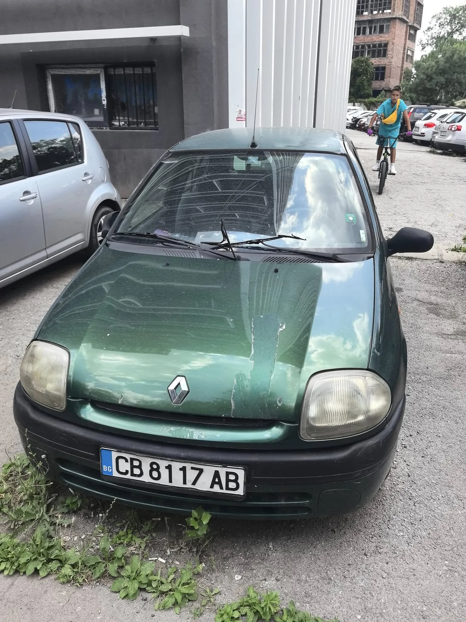 Ето го: остаряло зелено „ Рено “, добродушно спряло на паркинг край бул. „ Мария Луиза “ 193А в София. Прах по капака, буренче под гумите — може би е стояла тук дълго, може би притежателят има причина да я остави. Може би и има „ Гражданска “, и винетка, и всичко законно. Но очевидно това не е задоволително — изключително в случай че живееш в странния блок в близост и доста, но доста ти пречи непознатата ламарина под прозореца.