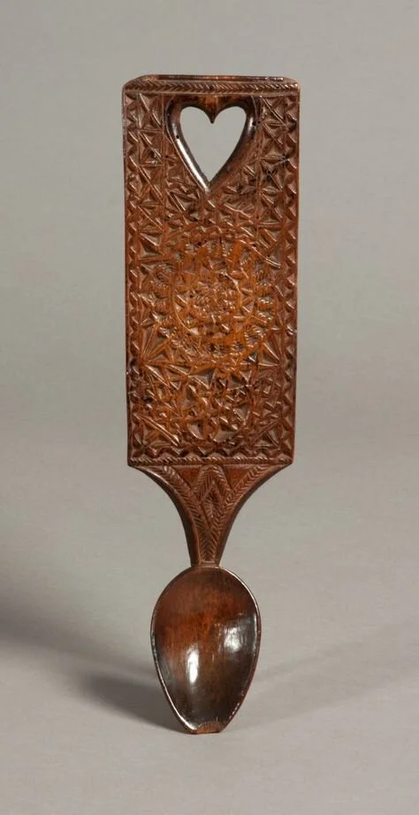 Любовните лъжици обаче са най-известни и употребявани в Уелс като най-ранният образец датира от 1667 година, само че се счита, че традицията е доста по-стара. Уелската любовна лъжица се назовава „ каула “ (тоест, лъжица за супа) и съвсем всеки мъж знае по какъв начин да я издълбае. Ранните образци са просто лъжици с буквите на двамата влюбени и дупка в горната част, с цел да се окачат на стената. С течение на поколенията те губят своята практическа приложимост и стават все по-декоративни с все по-сложна символика. А знаците са значими, тъй като по това време не е всекидневно мъжът намерено да демонстрира привързаността си към жена, тъй че вместо това той ще се пробва да я изкаже със знаците, които издълбава върху лъжицата. Младите мъже прекарват дълги часове в дълбаене на тези сантиментални джунджурии, нормално от едно парче дърво, с цел да ги подарят по-късно в символ на благосклонности към своята обичана.