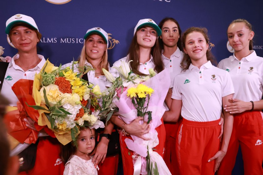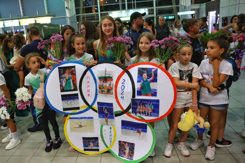 Еуфория завладя нощес летище София при посрещането на девойките от ансамбъла ни по художествена гимнастика, които се завърнаха от Париж.