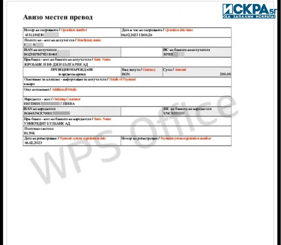 В събота на имейла на Искра.бг получихме писмо, в което жена, поискала анонимност, твърди, че на 10 февруари е превела пари на въпросното лице , а фургонът е трябвало да дойде на другия ден.