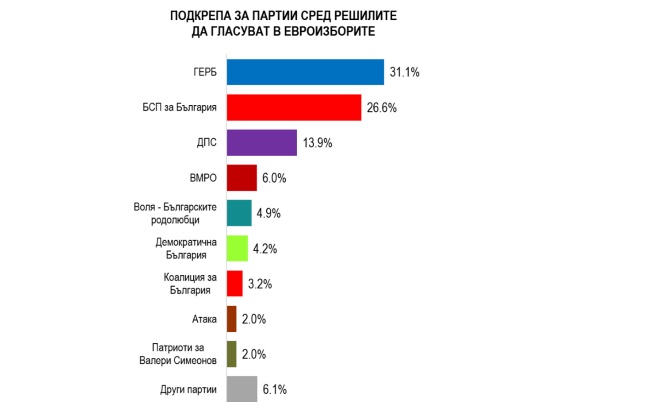 Дни преди вота ръководещите се употребяват с поддръжката на 31.1% от решилите да гласоподават против 26.6% за Българска социалистическа партия.