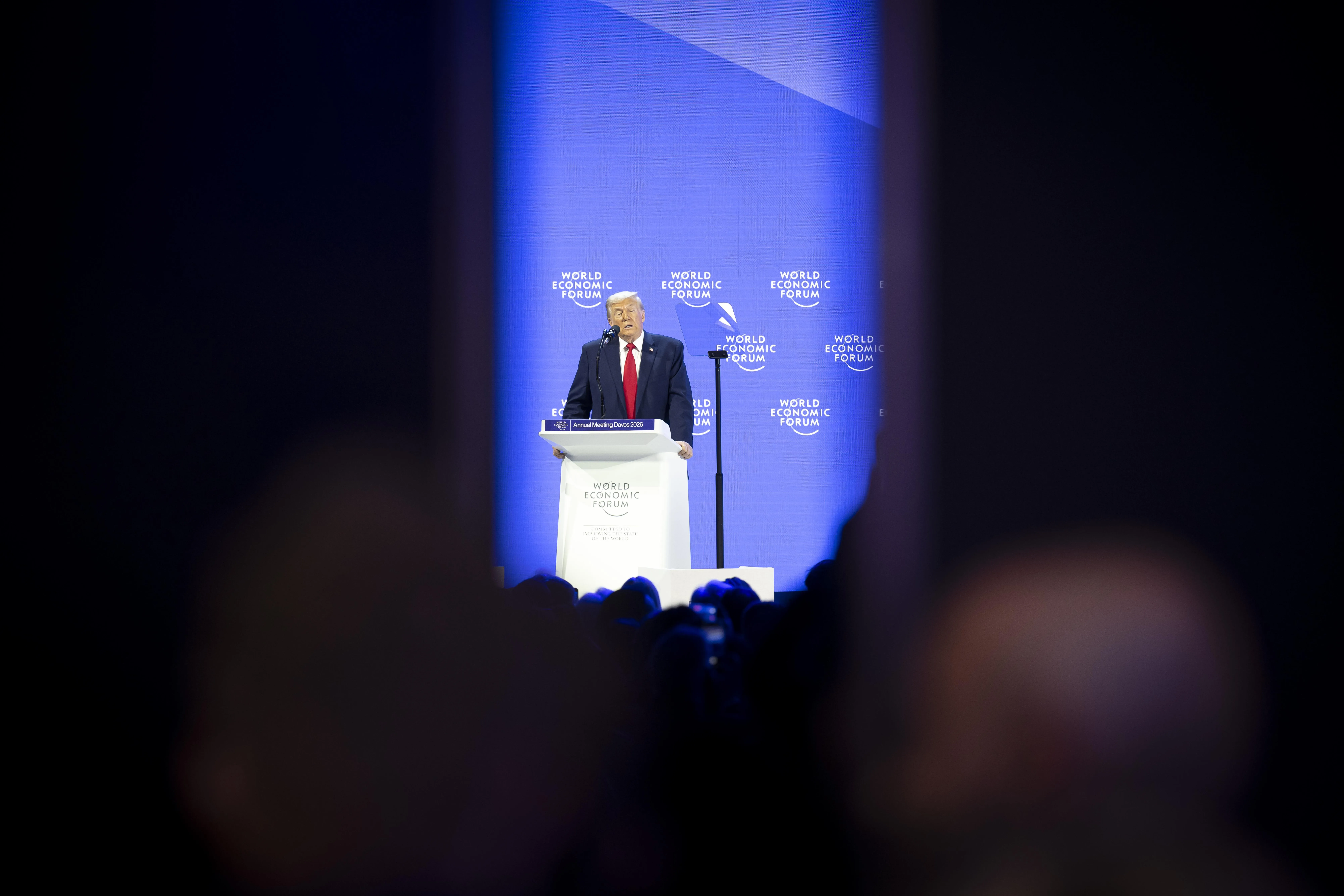 Президентът на Съединени американски щати дойде в алпийския курорт в Швейцария на фона на голямото напрежение поради заканите му да завладее Гренландия по един или различен метод.