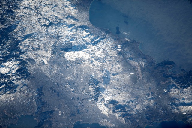 Европейската галактическа организация (ЕКА) пусна фотоси на снежна Гърция, като доказателство за климатичните промени, с които се сблъскваме. Снимките са направени от немския астронавт Матиас Маурер са пуснати в профила му в „ Туитър “.
