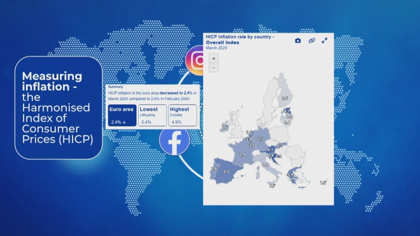 на Евростат демонстрира, че инфлацията е по-ниска освен у нас. Тя се забява до 2,4% приблизително за еврозоната през март при 2,6% през февруари.