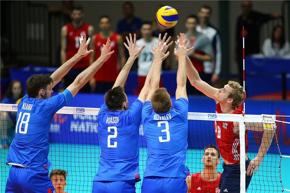 — Volleyball World (@FIVBVolleyball) June 23, 2018 Русия краткотрайно излезе отпред във краткотрайното класиране с актив от 34 точки, а Съединени американски щати е 4-и с 30 точки. “Сборная” контролираше мача и стигна разумно до чиста победа. Дмитрий Волков заби 16 точки (4 аса, 66% успеваемост в атака). Виктор Полетаев добави 12 точки (2 аса, 52% успеваемост в атака). Игор Филипов се отличи с 11 точки (6 аса, 2 блока, 75% успеваемост в атака). Кайл Енсинг заби 15 точки (2 аса, 1 блок) за Съединени американски щати, а Джак Ланглоа добави още 10 точки (1 ас).