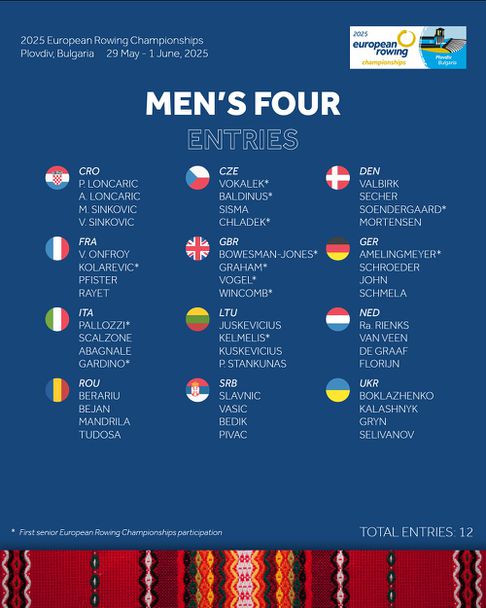 Това събитие ще включва и дълго чакания дебют на легендите Мартин и Валентин Синкович от Хърватия в мъжката четворка без рулеви, дружно с друга двойка братя, Патрик и Антон Лончарич. Братята Синкович имат сбирка от олимпийски медали, извоювани в 3 разнообразни класа лодки: сребро в мъжката четворка скул от Лондон 2012, дружно с Дамир Мартин Давид Сайн, злато в двойка скул от Рио 2016 и два златни медала в мъжката двойка без рулеви от Токио 2020 и Париж 2024.