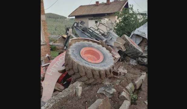 „ Нямахме ток до 2:00 ч. през нощта. Стълбът е отклонил фадромата, с цел да падне в самия двор. Гумата на машината беше върху вратата на буса. В къщата, в която е паднала, не живеят хора “, описа още Ивайло Стайков пред бТВ.