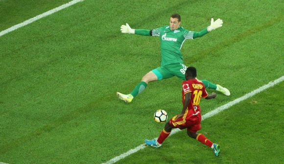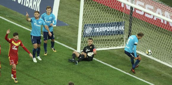 Увлечени в офанзиви, питерци започнаха да оставят прекомерно доста свободни пространства в половината си. В 73-ата минута Ткачов напредна отдясно и центрира към Кангва, който изпревари Андрей Луньов и откри резултата с първия си гол в Премиер лигата.
