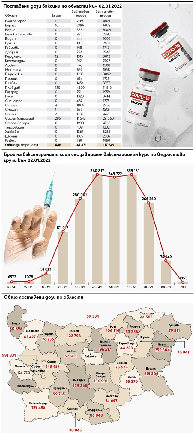 44 бяха общо жертвите за 2 януари, от които имунизирани 4-ма. Масово умрелите имунизирани са над 70-годишни и с съпътстващи болести